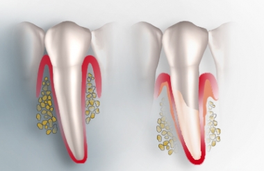 Gewebeaufbau mit regenerativen Maßnahmen: Mit Hilfe der Schmelzmatrixproteine wird ein neuer Zahnhalteapparat gebildet, der zuvor aufgrund einer Parodontitis verloren gegangen ist.
